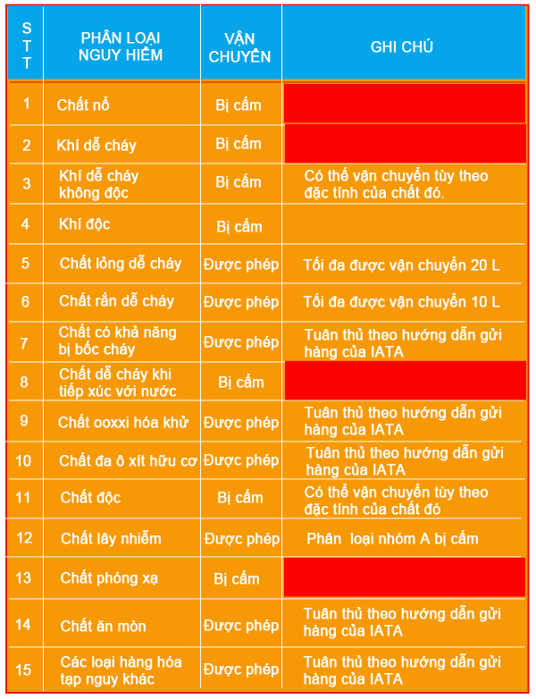 Đối với hàng hóa là hàng nhạy cảm, hàng nguy hiểm chúng tôi phân loại như sau: